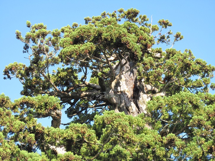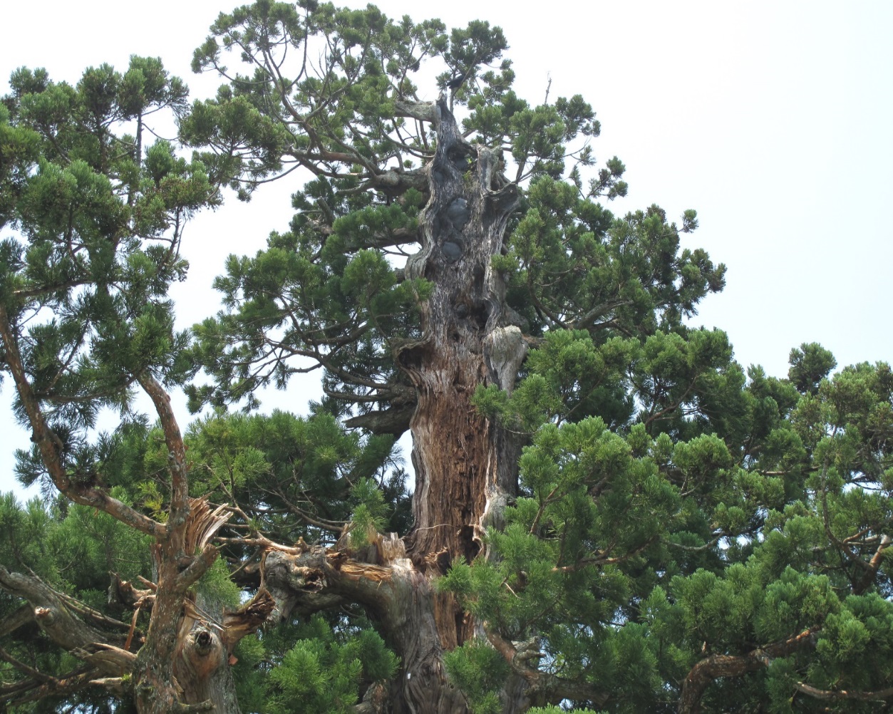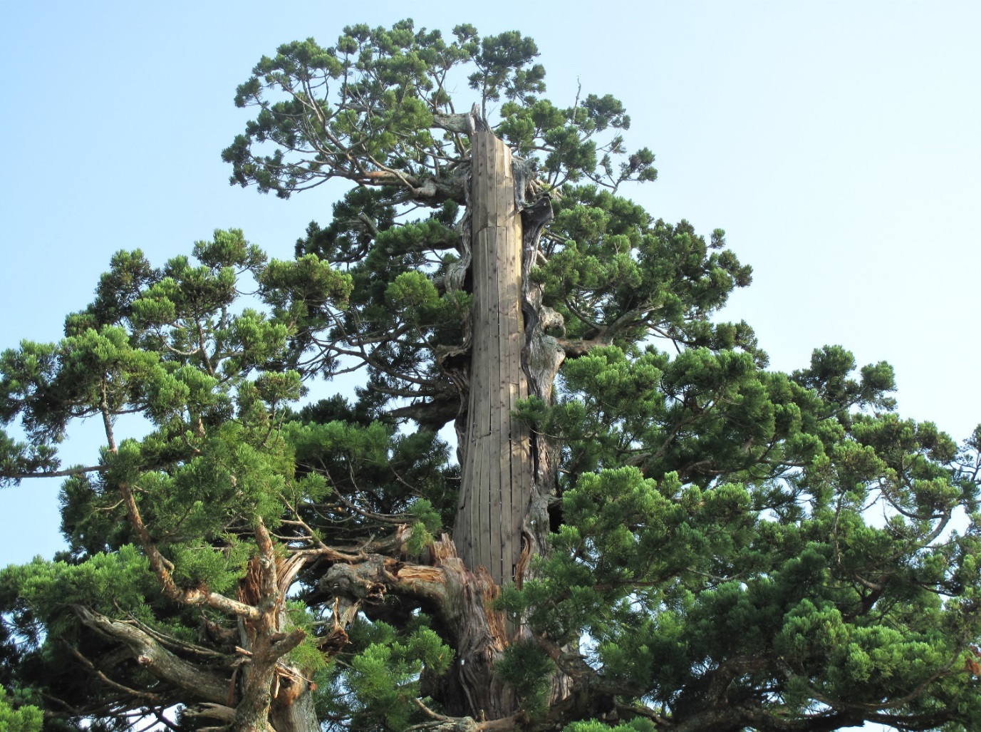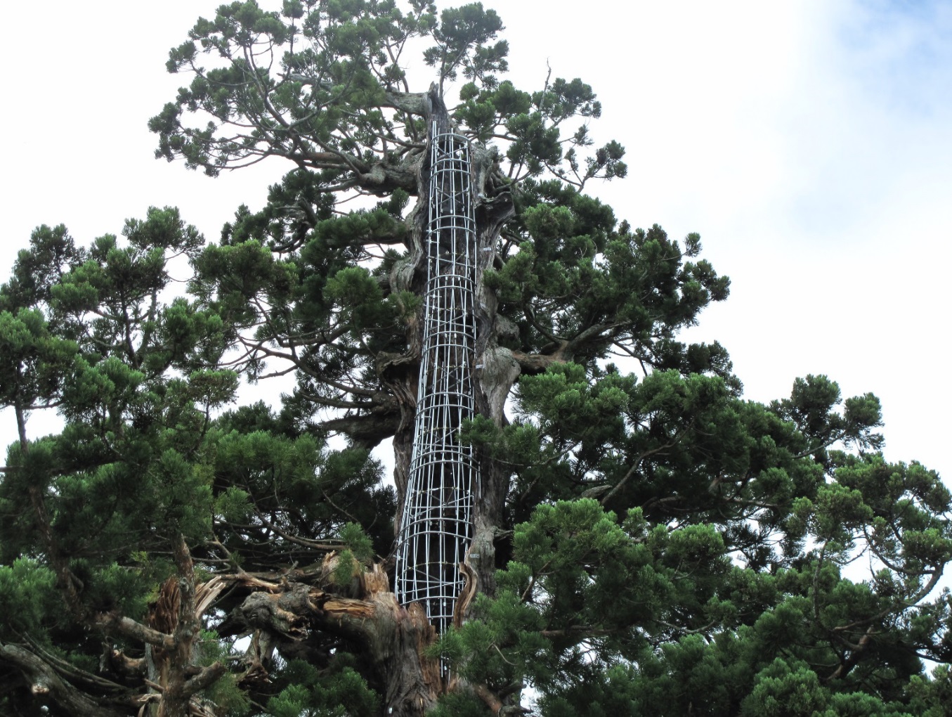 平成28年4月9日(土)午後2時半頃、突然国指定天然記念物八百杉の上部の太枝が崩落し幹や枝が大きく損傷した。隠岐の島町教育委員会より、八百杉の樹勢回復事業に関わってきた樹木医に、診断と今後の対策等について指導依頼があり、現地調査を、その対策と治療に当った。